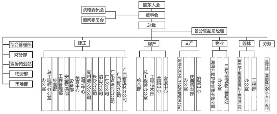 晨輝集團實行董事會領(lǐng)導(dǎo)下的總經(jīng)理負責(zé)制,董事會為集團發(fā)展戰(zhàn)略、發(fā)展目標(biāo)決策機構(gòu),總經(jīng)理室為集團經(jīng)營管理執(zhí)行機構(gòu)。